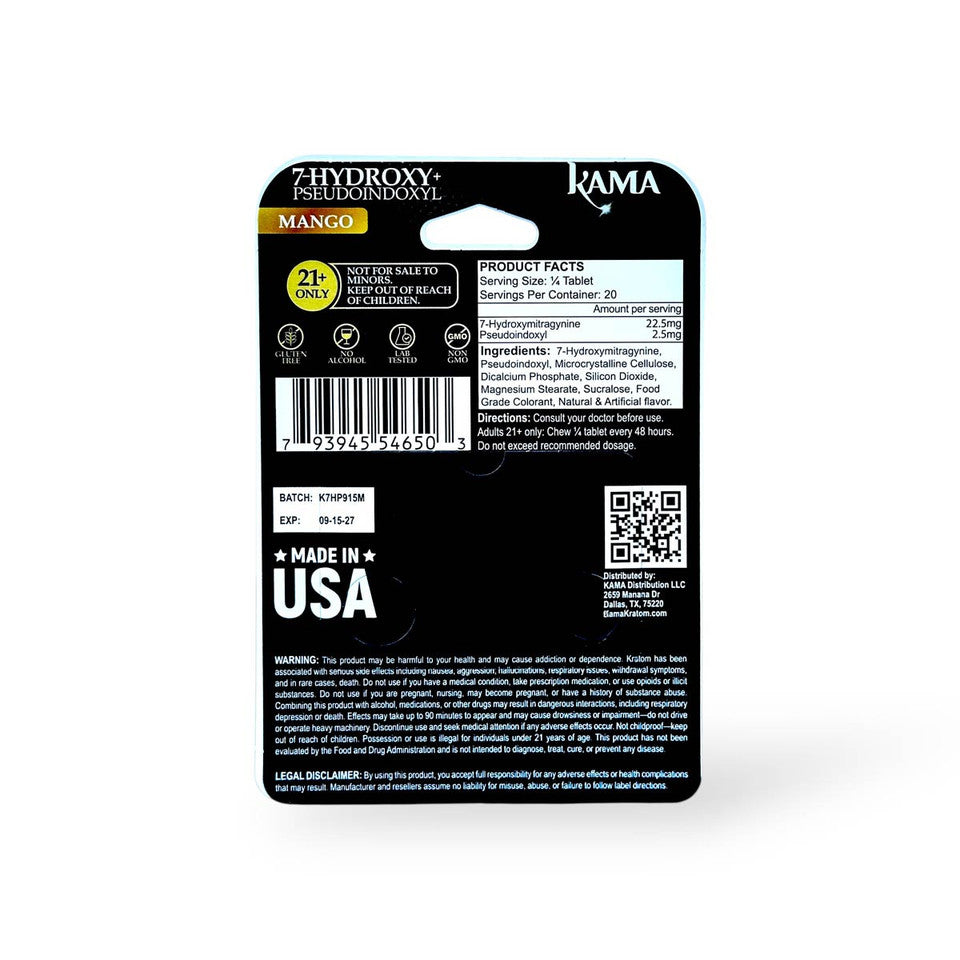 Enhance your kratom product lineup with the Kama 7-Hydroxymitragynine kratom extract tablets, crafted for both potency and convenience. Each tablet is packed with 20mg of 7-Hydroxymitragynine, one of the most powerful alkaloids in kratom, delivering a more intense and effective experience for users seeking a stronger effect. These tablets offer a precise, easy-to-use dosage, making them an excellent choice for those looking to elevate their kratom experience with added strength and consistency.