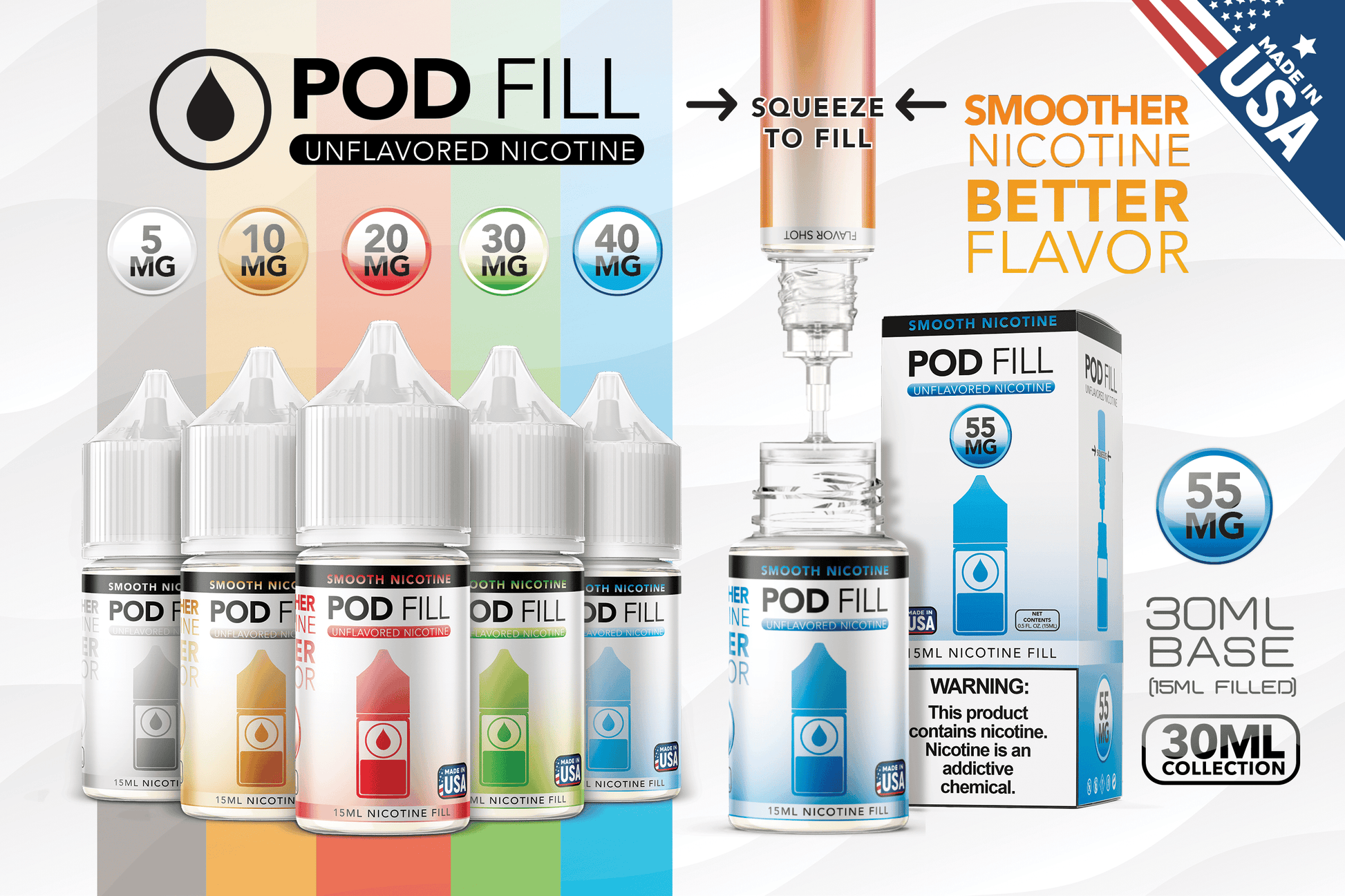• Nicotine Strength: 30mg, 55mg
