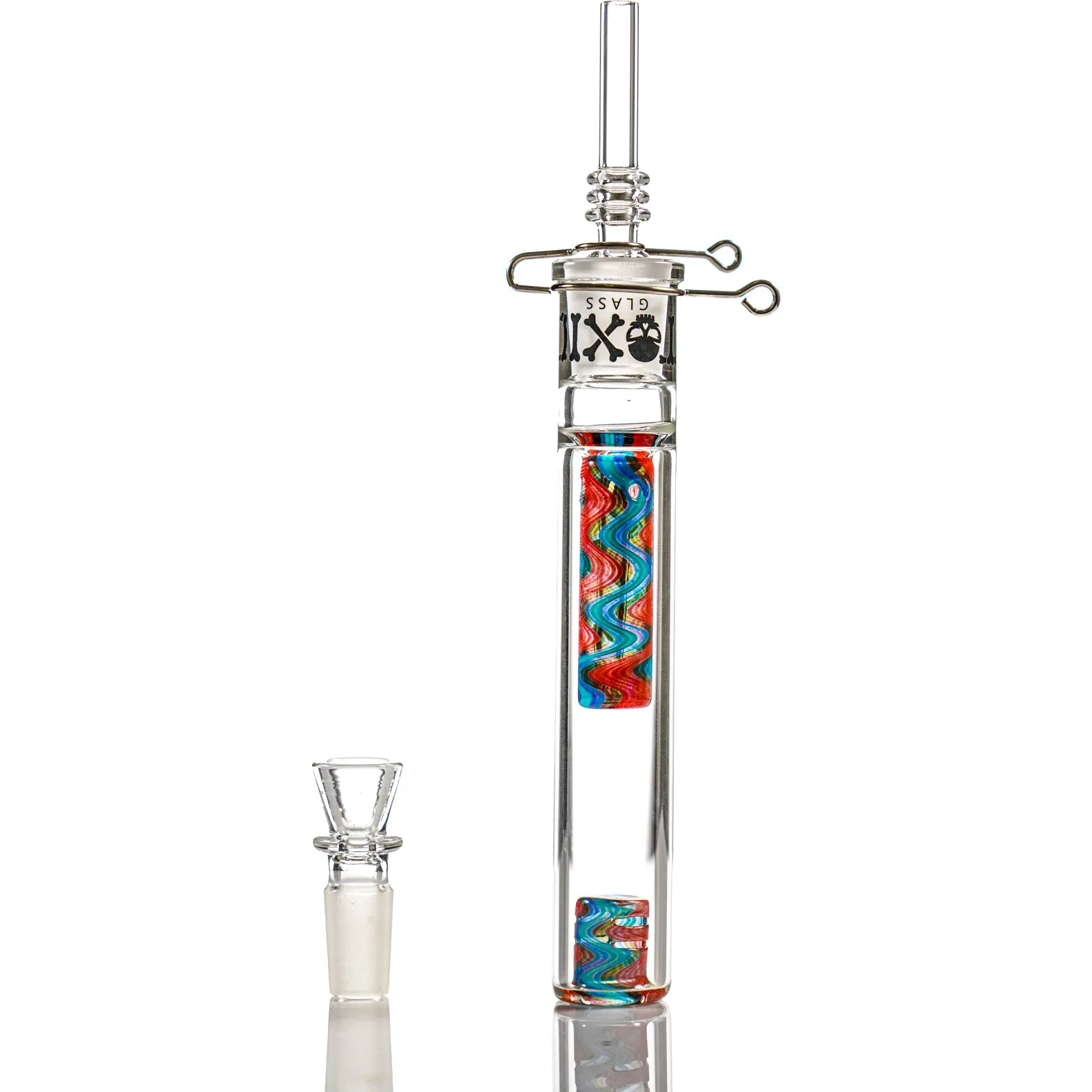 This Multipurpose Toxic Wigwag Nector Collector Set comes with a bowl piece, nail and a clip making it a complete kit. Switching the nail with the bowl instantly transforms it to a one-hitter pipe. The beautiful wigwag design comes in 5 different color mixtures. This multi-purpose piece is a must have for your collection and to elevate your smoking experience.
